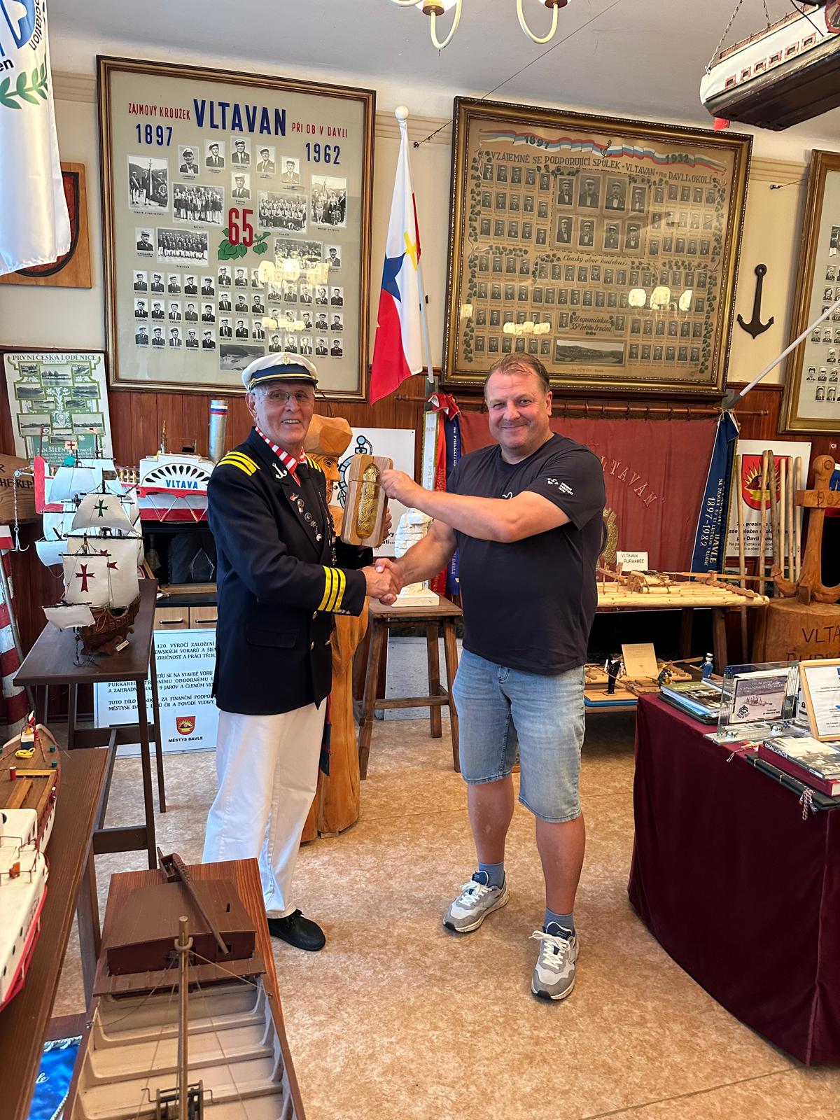 Ten ji uložil v klubovně Vltavanu Davle, kde ji předseda Josef Bílek předal do rukou vrátného Jana Pöschla z Vltavanu Purkarec, který ji s kolegy Josefem Nachlingerem a Jaroslavem Andrlem dovezou až do Prahy, na přístaviště TJ Bohemians, kde vor přečká do čtvrtka, kdy Vltavská štafeta vyvrcholí slavnostním zahájením výstavy VLTAVA slavná & splavná.