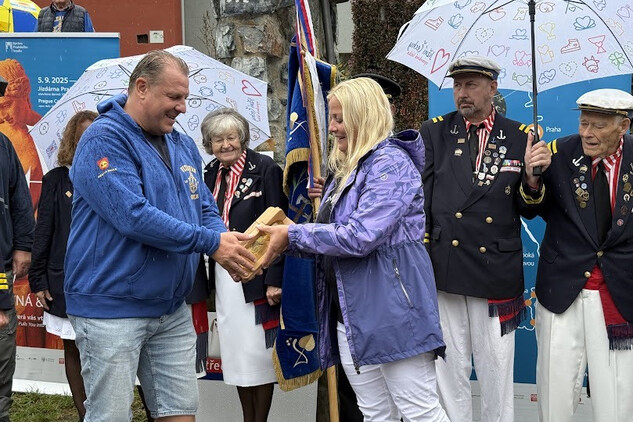 Dovezli tam, společně s kapslí s vodou z vltavských pramenů, hejtmanku Petru Peckovou, poslankyni Věru Kovářovou Železnou a starostku městysu Štěchovice Kateřinu Rožníčkovou, která štafetu předala do rukou starosty městysu Davle Jiřího Prokůpka.