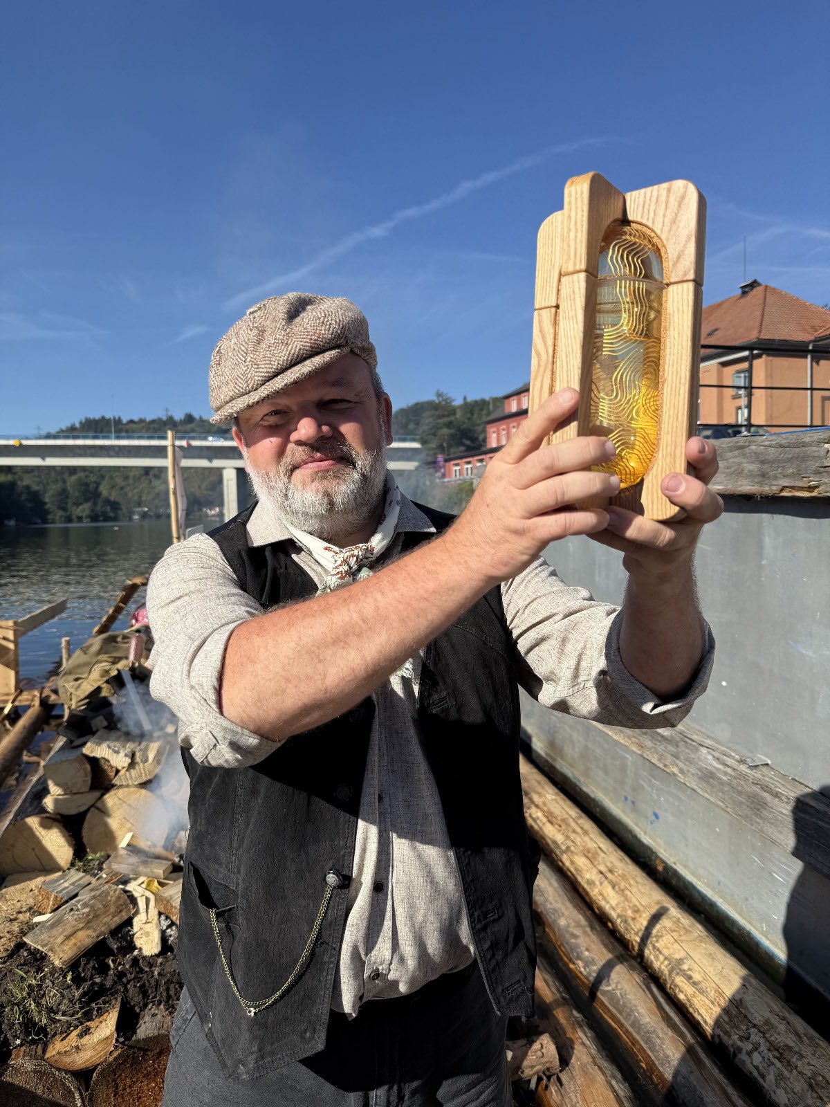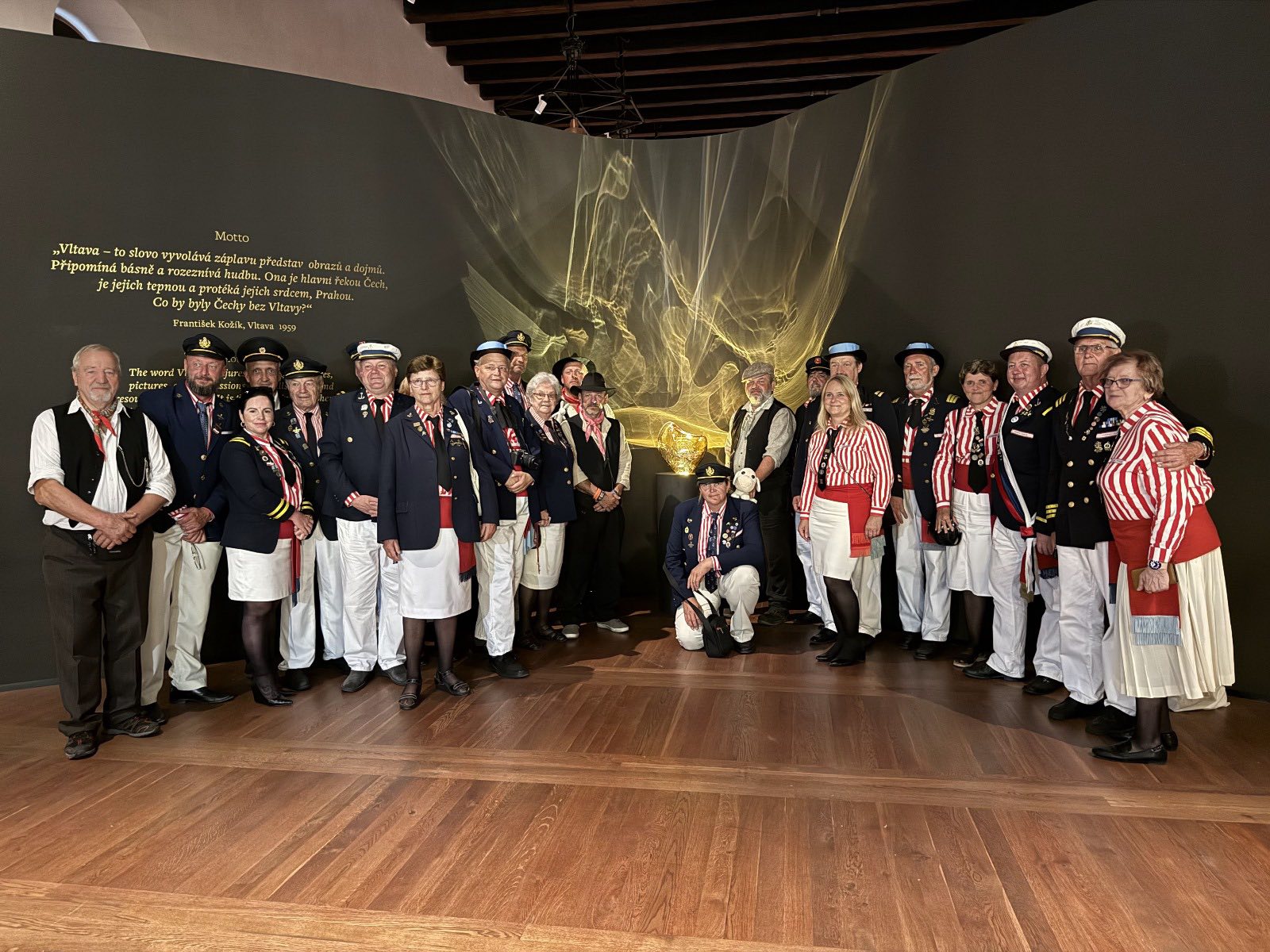 Na „Bohemce“ předal vrátný voru Jan Pöschl vodu z pramenů Vltavy předsedovi Vltavanu Praha Václavu Hodrovi, který ji druhý den v poledne svěřil do rukou Evy Pavlové.