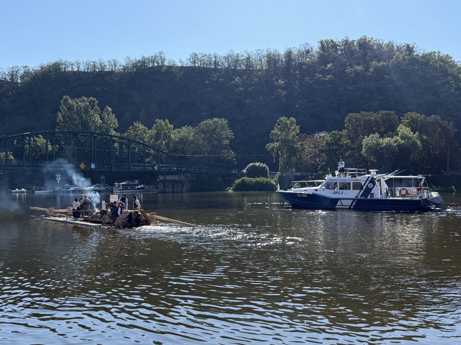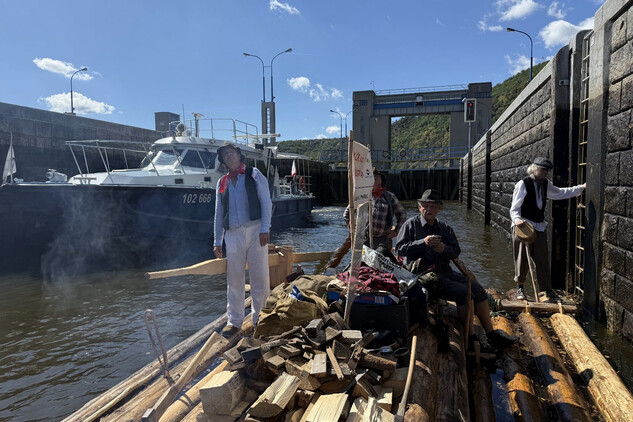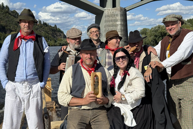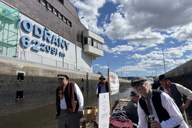 Trojice plavců z Purkarce, ve složení vrátný Jan Pöschl, Josef Nachlinger a Jan Pöschl na historické vorové tabuli ve čtvrtek 4. září dopravili z pražského veslařského klubu Bohemians TJ na Rašínovo nábřeží k bočnokolesovému parníku Vltava manželku prezidenta ČR Evu Pavlovou.