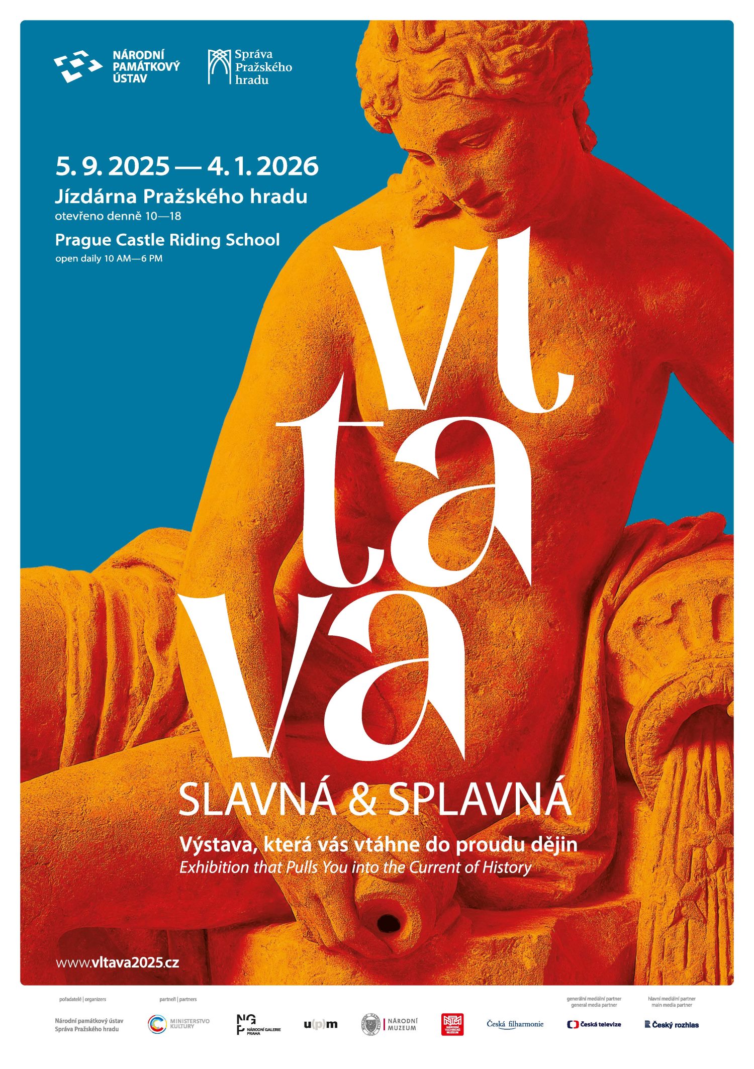 Na pět stovek pečlivě vybraných exponátů představuje řeku Vltavu jako živý symbol naší národní identity a přibližuje její význam v dějinách, umění i v každodenním životě. Návštěvníci uvidí vzácné literární památky a archivní dokumenty ze 13. století, výtvarná a technická díla, předměty spojené s významnými osobnostmi i kulturními fenomény, které formovaly obraz řeky. Výstavu slavnostně zahájila manželka prezidenta republiky, paní Eva Pavlová, která vlila do skleněného srdce Vltavy vodu dopravenou na Pražský hrad dvouměsíční Vltavskou štafetou. Výstava VLTAVA slavná & splavná, organizovaná Národním památkovým ústavem a Správou Pražského hradu ve spolupráci s předními institucemi zřizovanými Ministerstvem kultury, potrvá v Jízdárně Pražského hradu do 4. ledna 2026.
