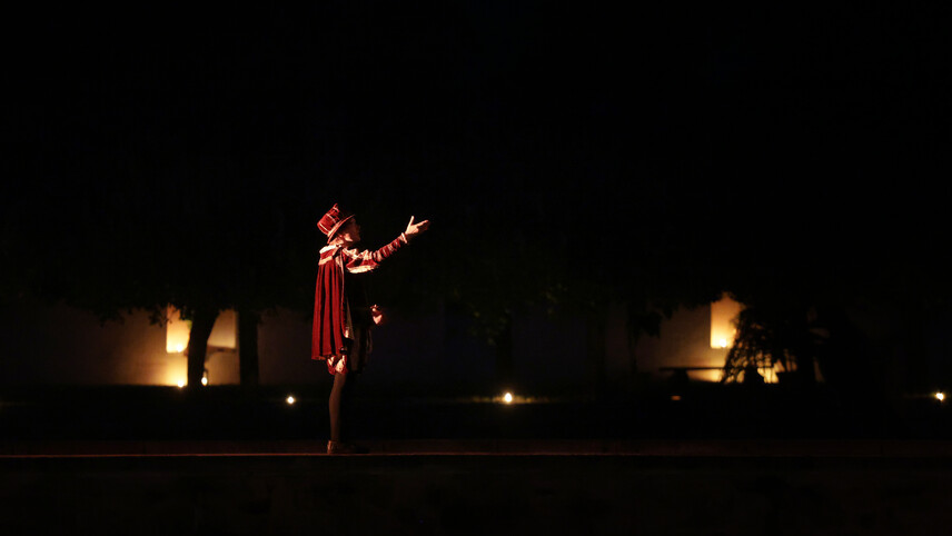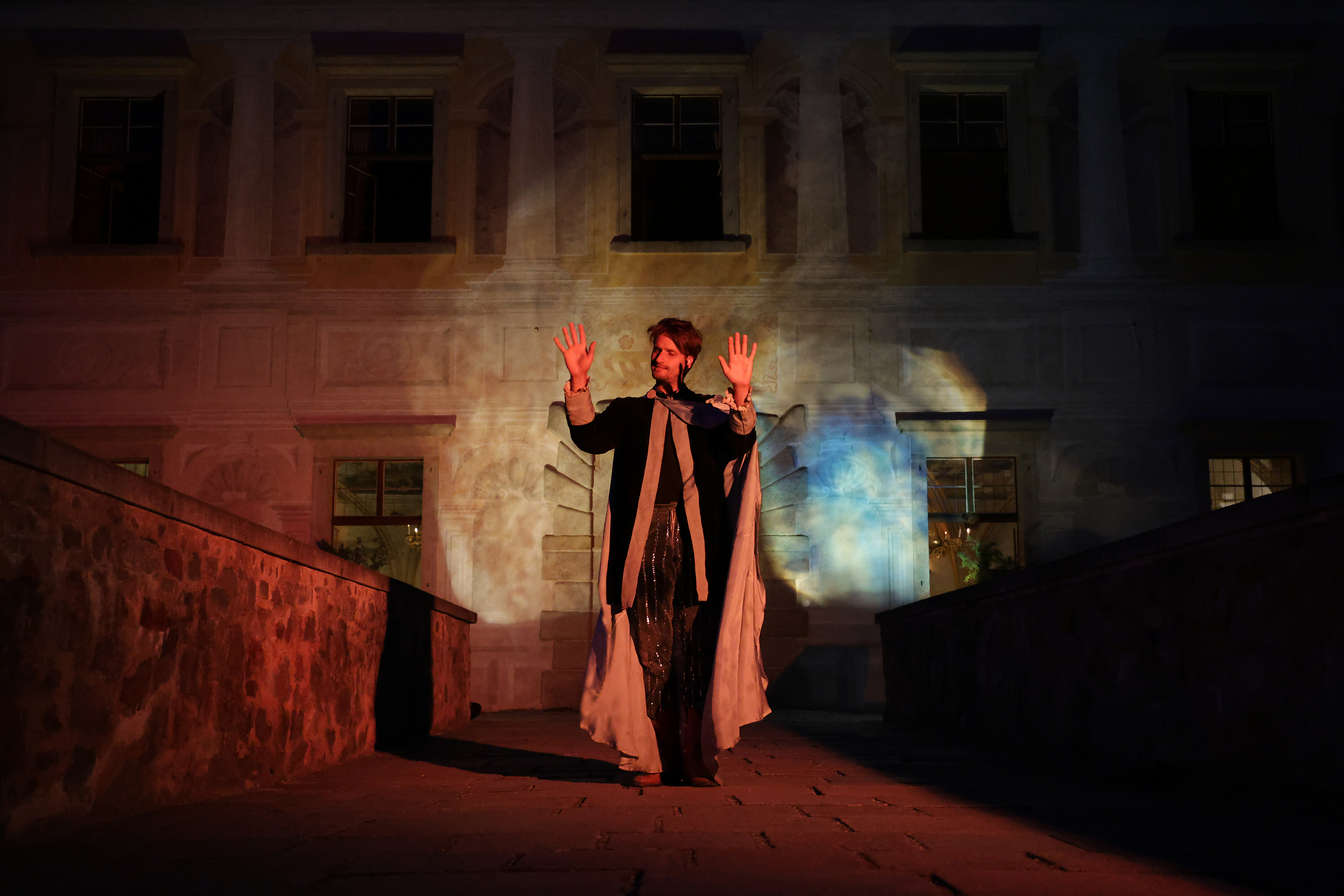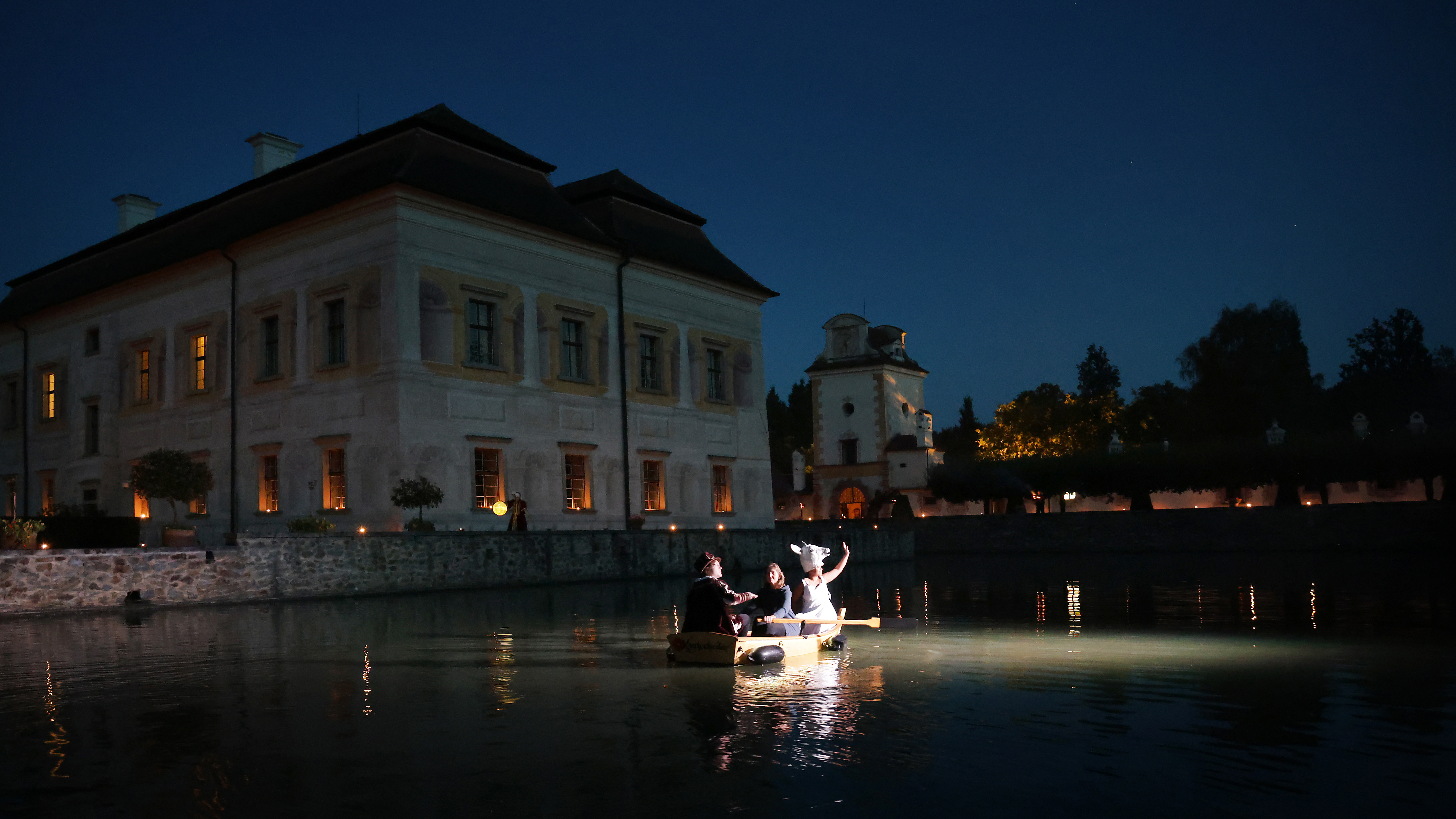 Zhruba stominutové představení se odehrává v celém zámeckém areálu (v zahradě i v interiéru), diváci se pohybují společně s herci a muzikanty. Nejedná se o bezbariérové představení (v interiéru je úzké točité schodiště), nebudou k dispozici lavičky na sezení.
