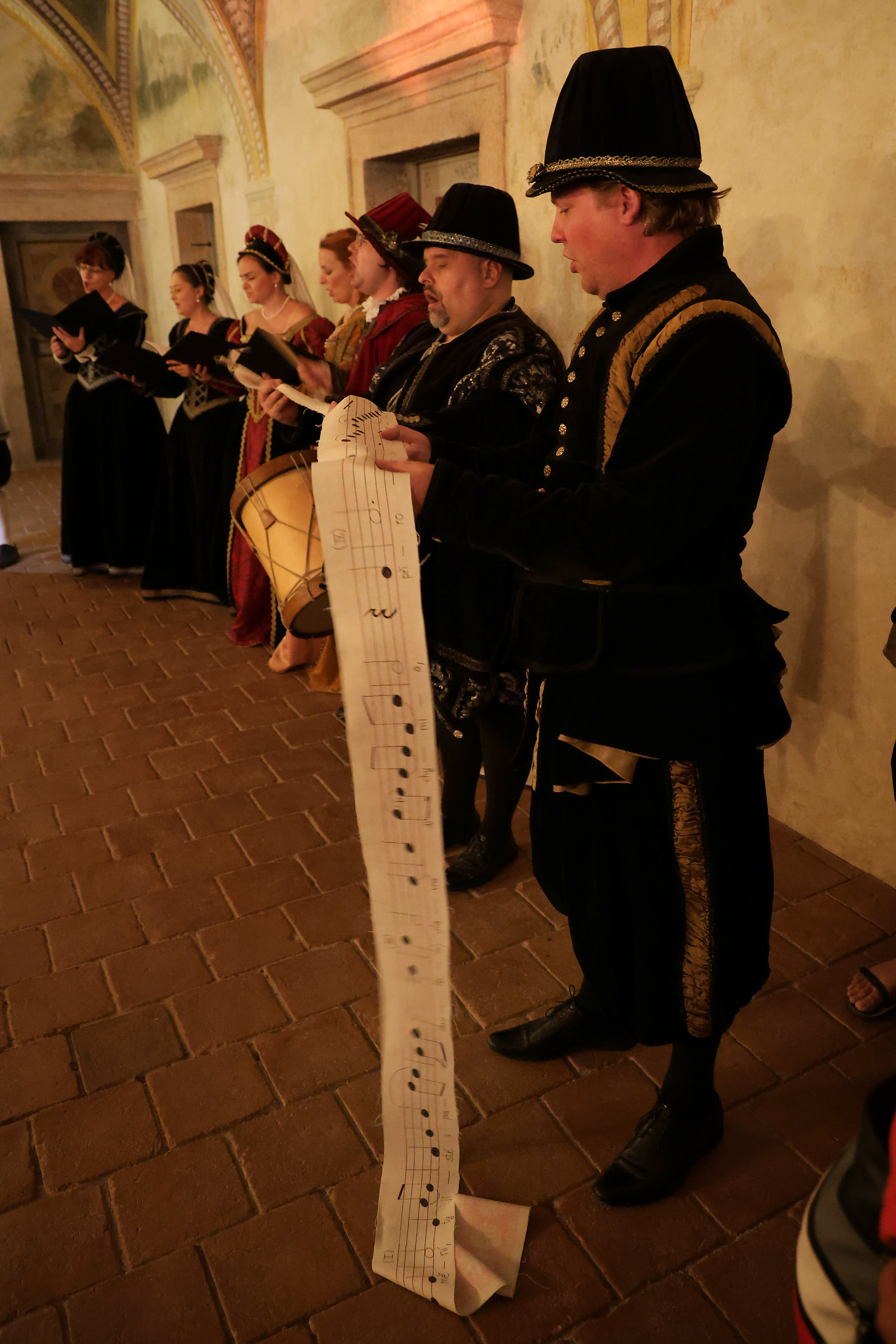 Na představení potkáte herce souboru Malého divadla a specialisty na starou hudbu v čele s loutnistou Richardem Závadou. Dále účinkuje taneční soubor A Balli specializovaný na rekonstrukce dobových renesančních tanců pod vedením Jana Patíka, dále externí sólisté opery Jihočeského divadla a členové komorního smíšeného sboru Entropie.