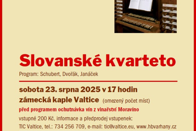Koncert se koná v sobotu 23. srpna 2025 od 17:00 v kapli zámku Valtice.